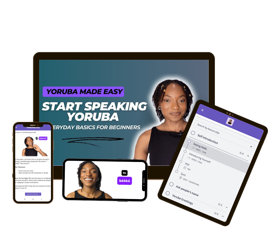 This course focuses on real-life communication, not memorizing long grammar rules. You’ll start speaking Yoruba from your very first lesson, using practical words, phrases, and expressions that matter in everyday conversations — all in short, beginner-friendly lessons designed to build your confidence quickly.